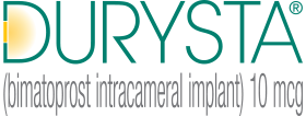 1. This offer is valid only for patients 18 years of age or older who have commercial insurance coverage for DURYSTA® (bimatoprost intracameral implant). 2. This offer is not valid for use by patients enrolled in Medicare, Medicaid, or other federal or state programs (including any state pharmaceutical assistance programs), or private indemnity or HMO insurance plans that reimburse you for the entire cost of your prescription drugs. Patients may not use this offer if they are Medicare-eligible and enrolled in an employer-sponsored health plan or prescription drug benefit program for retirees. This offer is not valid for cash-paying patients. 3. Depending on insurance coverage, most eligible insured patients may pay as little as $0 for each eye, up to one (1) DURYSTA implant per eye. This offer applies to the implant only and does not apply to costs for any other medication, procedure, or diagnostic service. Check with healthcare provider and insurance plan for discount. Maximum reimbursement limit of $4,200.00 per patient applies; patient out-of-pocket expense will vary. 4. Claims must be submitted within 365 days of the treatment date and must include a copy of (a) an Explanation of Benefits (EOB) for DURYSTA, (b) DURYSTA Reimbursement Request Form, and (c) documentation from the physician’s office indicating the product code, the patient-paid amount, and the diagnosis of an FDA-approved indication. 5. Patients and healthcare providers may not seek reimbursement for value received from the DURYSTA Savings Program from any third-party payers. 6. AbbVie reserves the right to rescind, revoke, or amend this offer without notice. 7. Offer good only in the USA, including Puerto Rico and Guam. Patients residing in or receiving treatment in certain states may not be eligible to participate in this program. 8. Void if prohibited by law, taxed, or restricted. 9. This offer is not transferable. The selling, purchasing, trading, or counterfeiting of this offer is prohibited by law. 10. This offer has no cash value and may not be used in combination with any other discount, coupon, rebate, free trial, or similar offer for the specified prescription. 11. This offer is not health insurance. 12. By redeeming this offer, patient represents they meet the eligibility criteria above and patient understands and agrees to comply with the terms and conditions of this offer. 13. To learn about AbbVie’s privacy practices and your privacy choices, visit https://abbv.ie/corpprivacy.